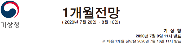 | 월간 한달 및 세달 날씨예보 (0) | 2020.07.14 |